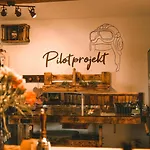 Ferienhaus Am Flugplatz, Umgeben Von Natur features coffee and tea making machines, a fridge, and kitchenware provided in an equipped kitchenette.